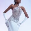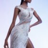 Off-White Sheer Crystal-Embellished Mermaid Gown
