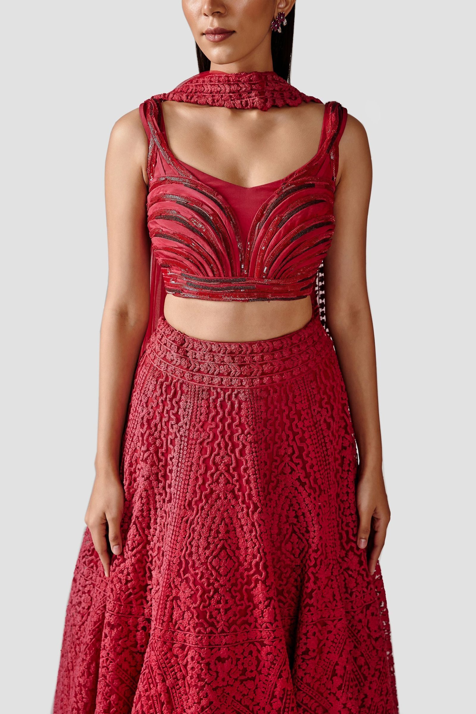 Fabric: Net lehenga, crepe blouse and net dupatta