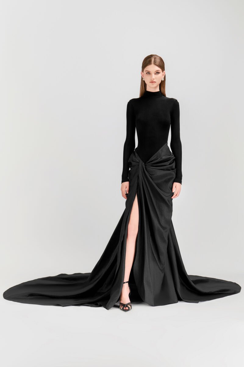 Black Kelsey Turtleneck in Spandex & Taffeta Evening Gown