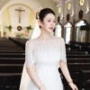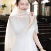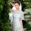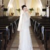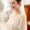 Every detail is meticulously crafted with sparkling hand-embellished crystals, harmoniously paired with soft feathers that evoke the dreamy allure of art. The centerpiece of this design is the sheer cape gracefully draped over the shoulders, exuding a sense of elegance, sophistication, and timeless allure.