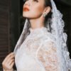 Designer Le Thanh Hoa masterfully blends premium lace with intricate motifs, crafting a gown of refined artistry. The modest silhouette is gracefully balanced by a voluminous skirt, creating a look that is both enchanting and elegant, ensuring the bride shines with timeless beauty on her special day.