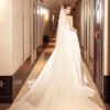 The design harmonizes timeless classical charm with a modern, youthful flared silhouette. Enhanced by a magnificent overskirt and adorned with sparkling Swarovski crystals, it creates a truly captivating visual effect.