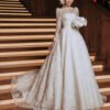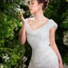 The design features a classic mermaid silhouette, accentuated by an alluring yet refined open-back detail that gracefully highlights the bride’s figure and radiant beauty.