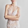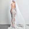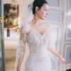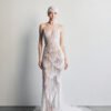 Inspired by blooming petals in the early morning light, the gown is crafted from sheer tulle with cascading floral motifs, meticulously embellished with thousands of shimmering crystals. The highlight of the design lies in its graceful sweetheart neckline, perfectly paired with a captivating mermaid silhouette in a fit & flare form that beautifully accentuates the feminine curves.